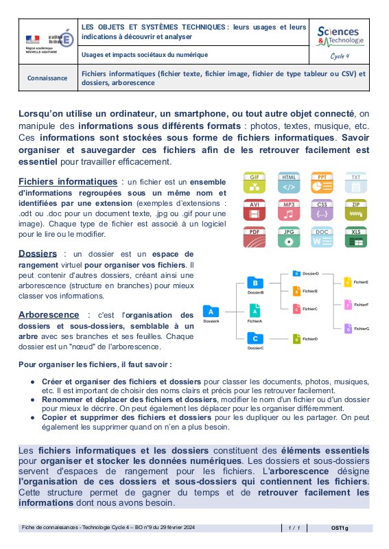 Ost1G Fichiers Informatiques Fichier Texte Fichier Image Fichier De Type Tableur Ou Csv Et Dossiers Arborescence