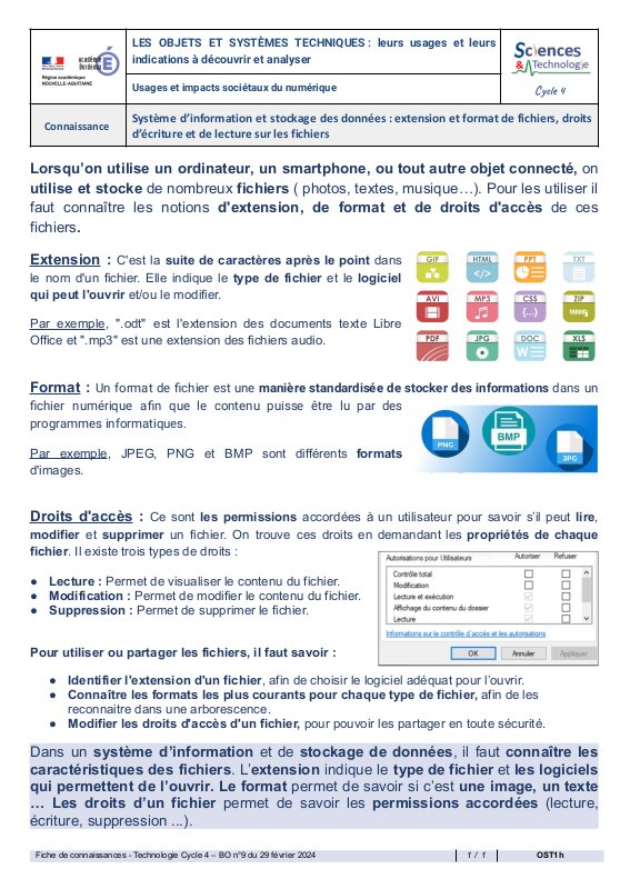 Ost1H Systeme Dinformation Et Stockage Des Donnees Extension Et Format De Fichiers Droits Decriture Et De Lecture Sur Les Fichiers