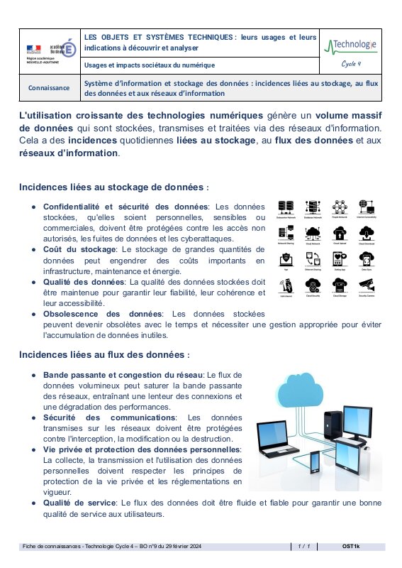 Ost1K Systeme Dinformation Et Stockage Des Donnees Incidences Liees Au Stockage Au Flux Des Donnees Et Aux Reseaux Dinformation