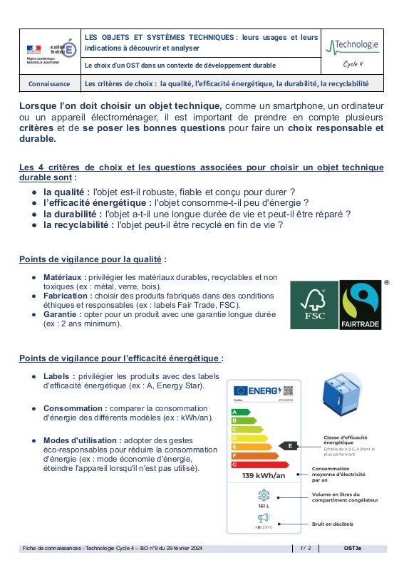 OST :FICHES CONNAISSANCES TECHNOLOGIE 2025-2026